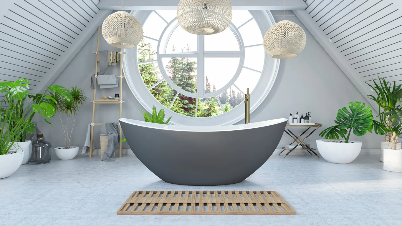 Improve the atmosphere of your bathroom by adding a bathtub.